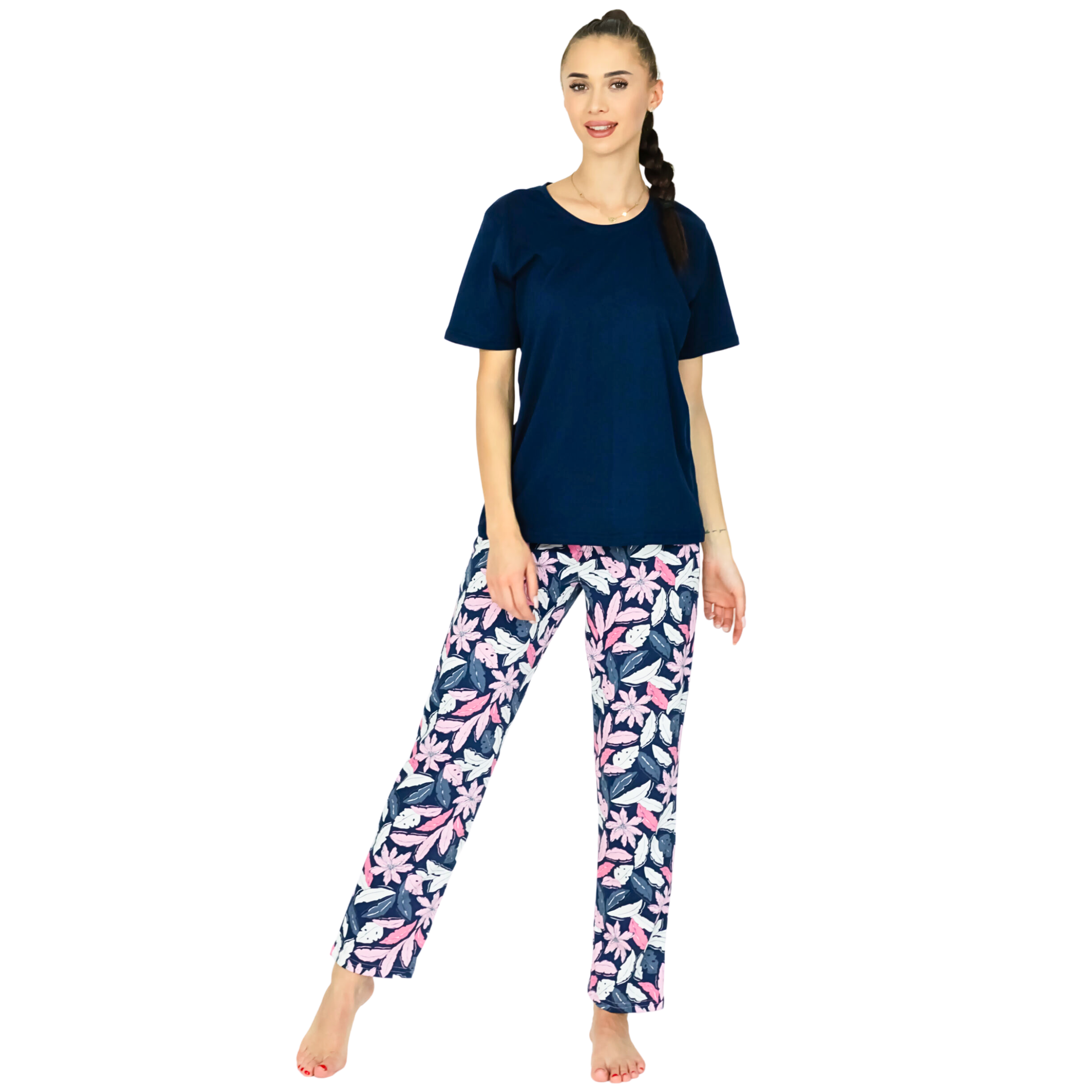 Komfortowa, wciągana piżama damska z krótkim rękawem i długimi spodniami!