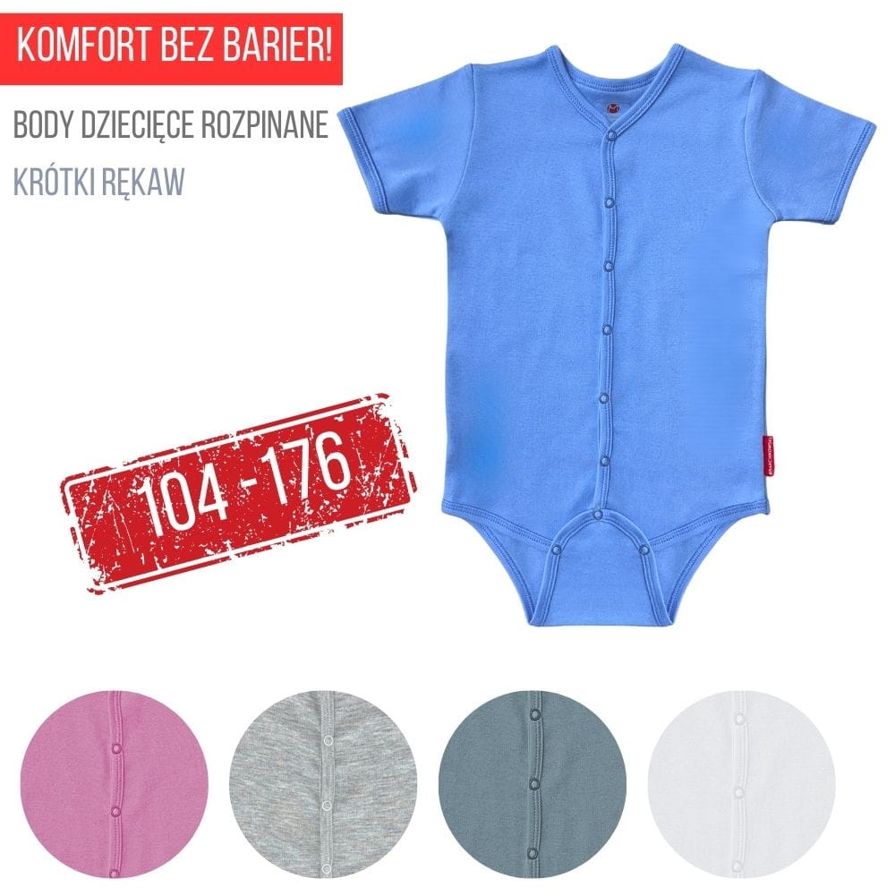 Body dziecięce rozpinane na całej długości krótki rękaw 104-176