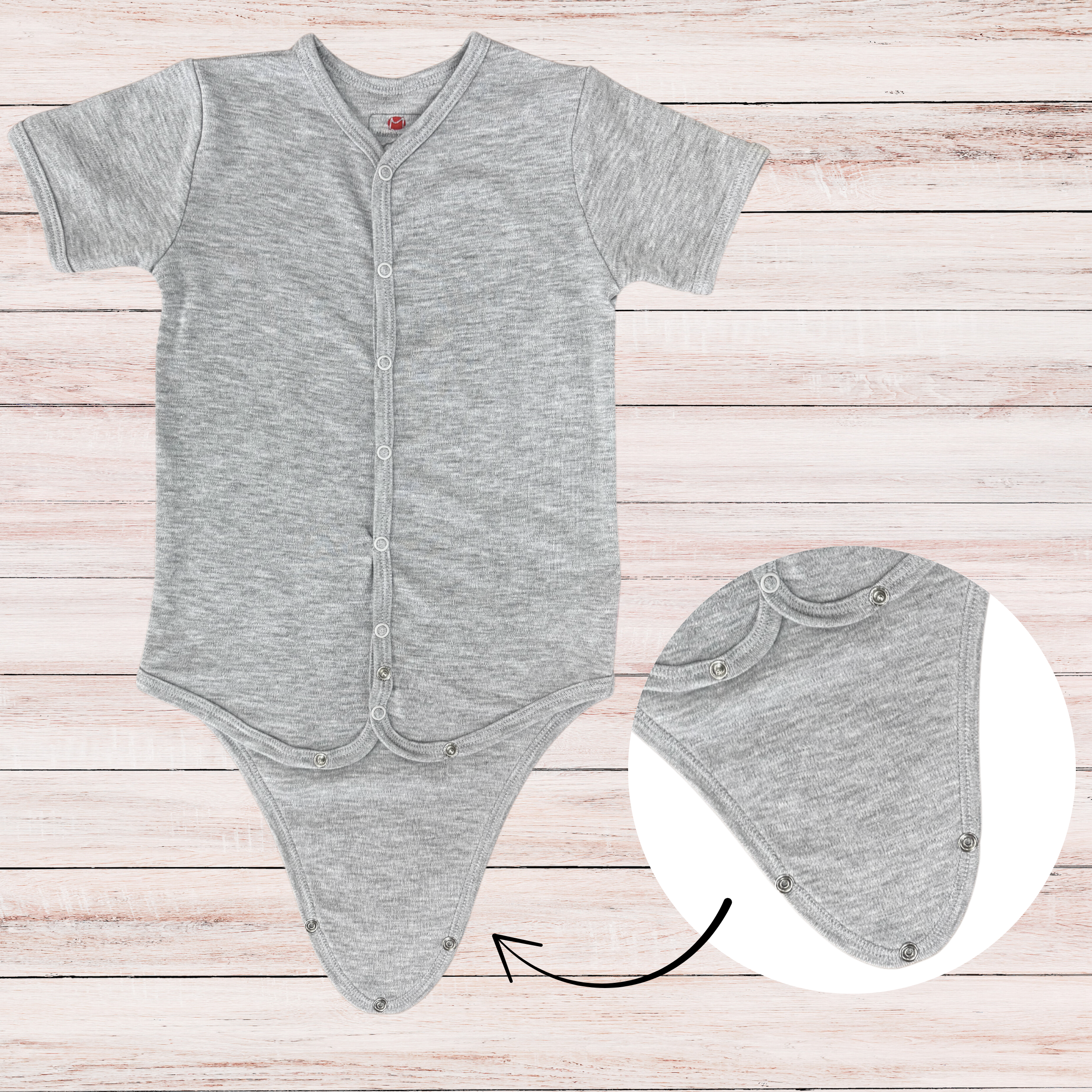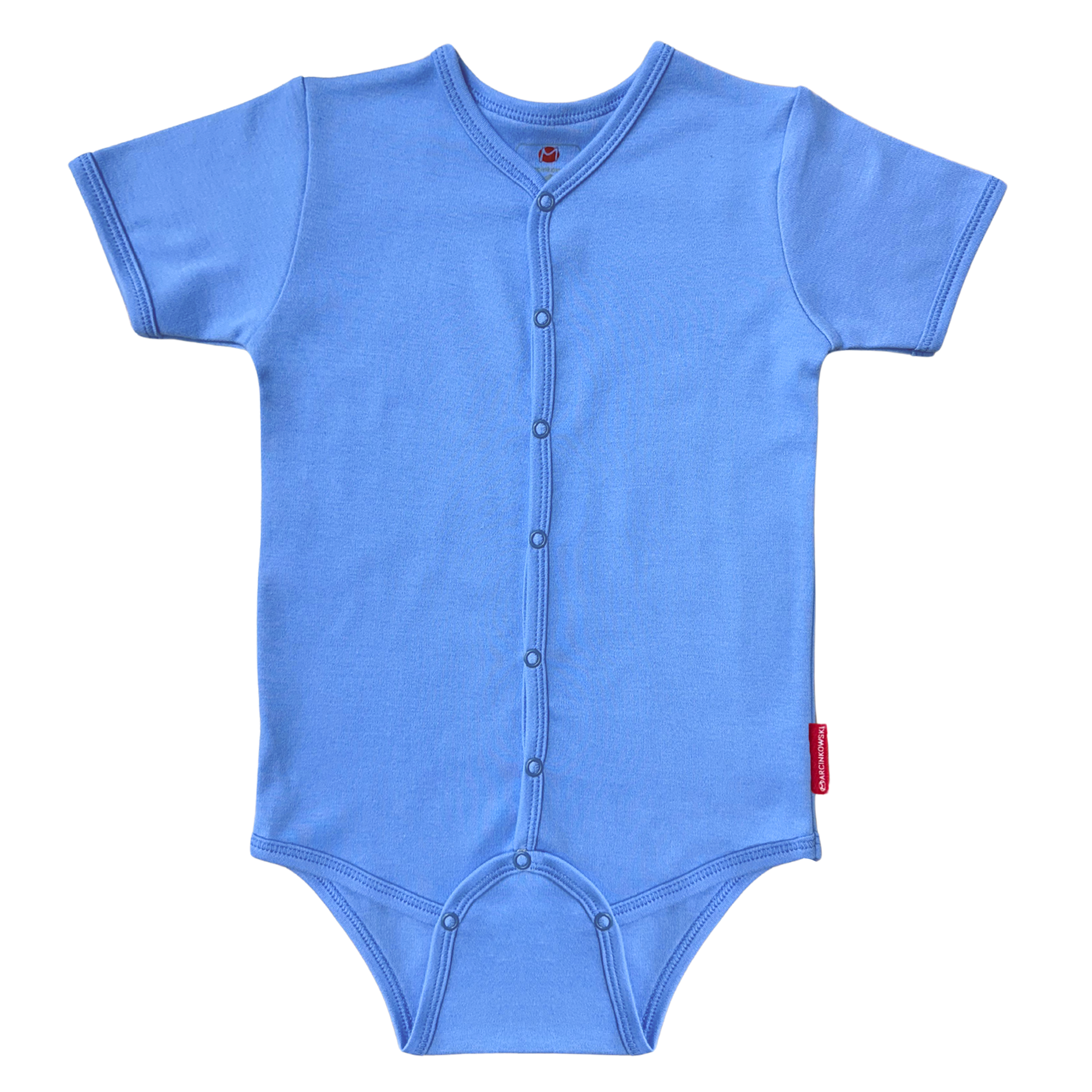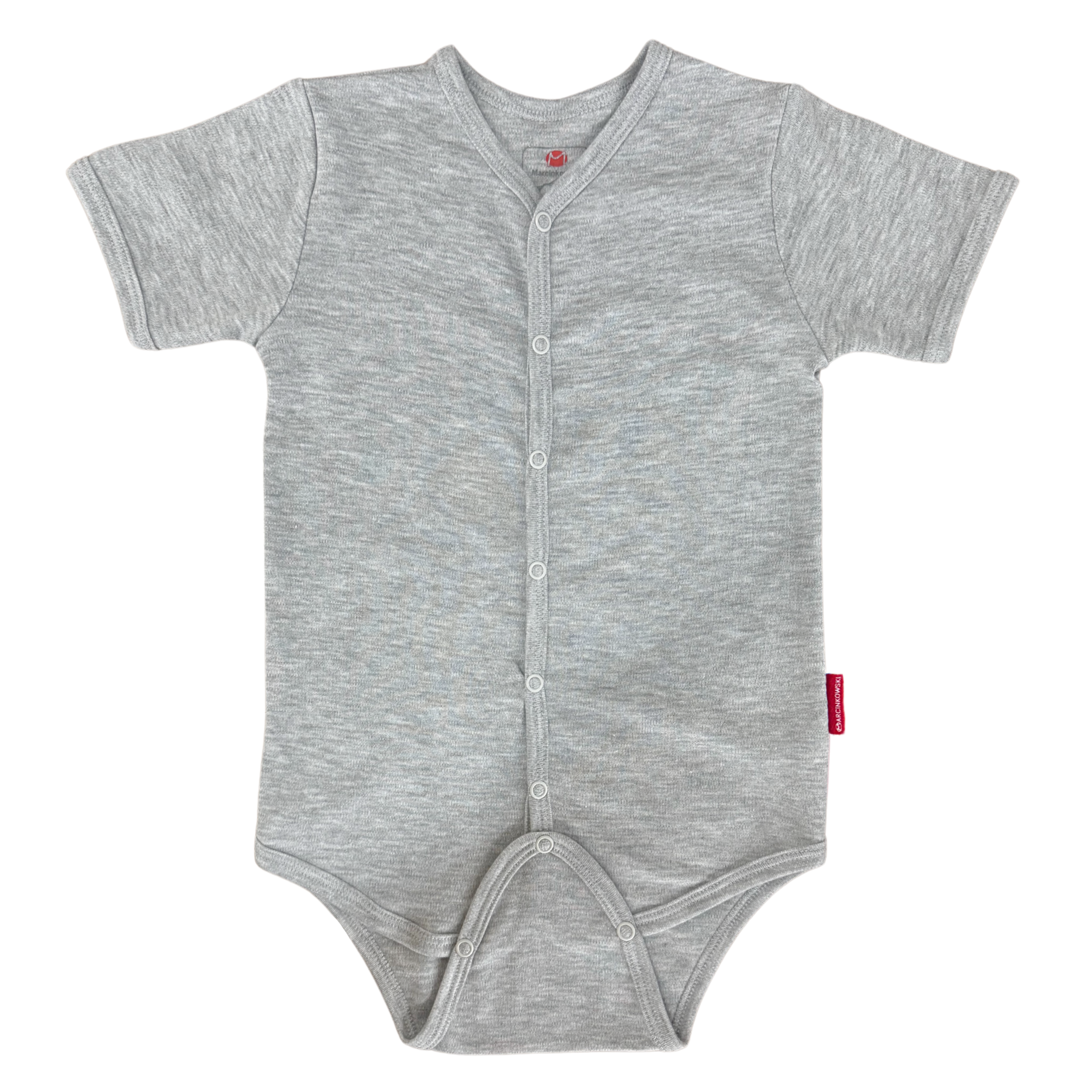 Wygodne body dla dzieci rozpinane z przodu, na całej długości. Ubranie wyprodukowane szczególnie z myślą o dzieciach chorych i niepełnosprawnych. Wykonane w 100% z bawełny czesanej, miłej i delikatnej dla skóry dziecka. Body posiadają certyfikat "Bezpieczny dla dziecka" i bezniklowe, nieuczulające napy niemieckiej firmy Prym. W tej wersji body na krótki rękaw.