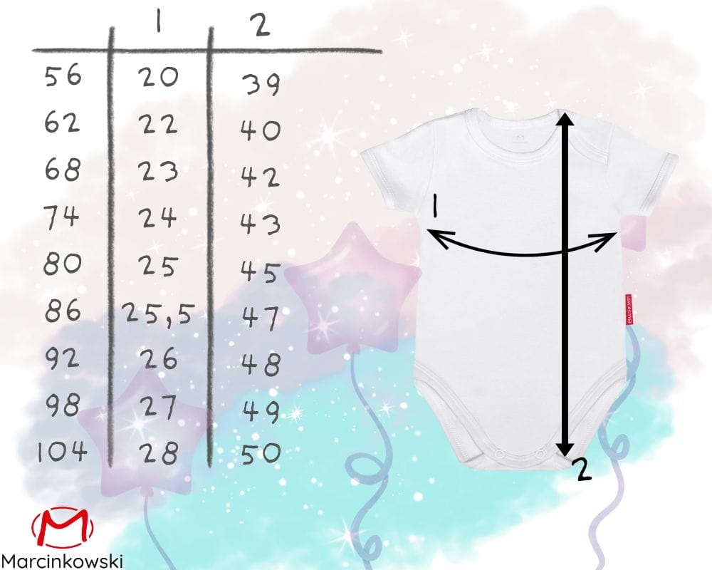Wygodne body z uroczym nadrukiem dla niemowlaków i małych dzieci. Body świetnie sprawdzą się od pierwszych dni życia, jako wyprawka dla noworodka.