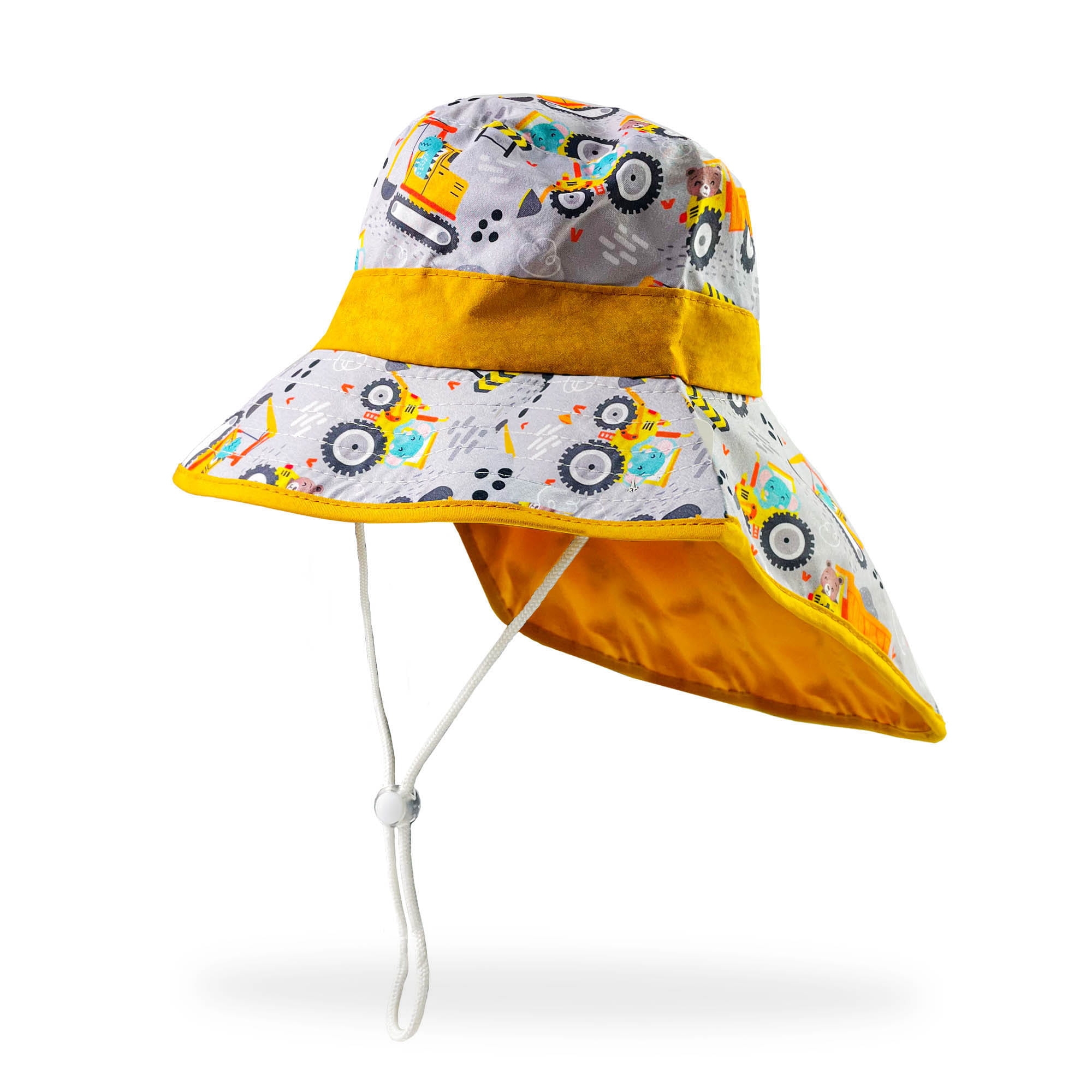 Kapelusz dziecięcy z osłoną na kark. Idealnie nada się na plażę, do wody, na lato. Kapelusz posiada dwie warstwy. Kapelusz posiada sznurek z zapięciem, które