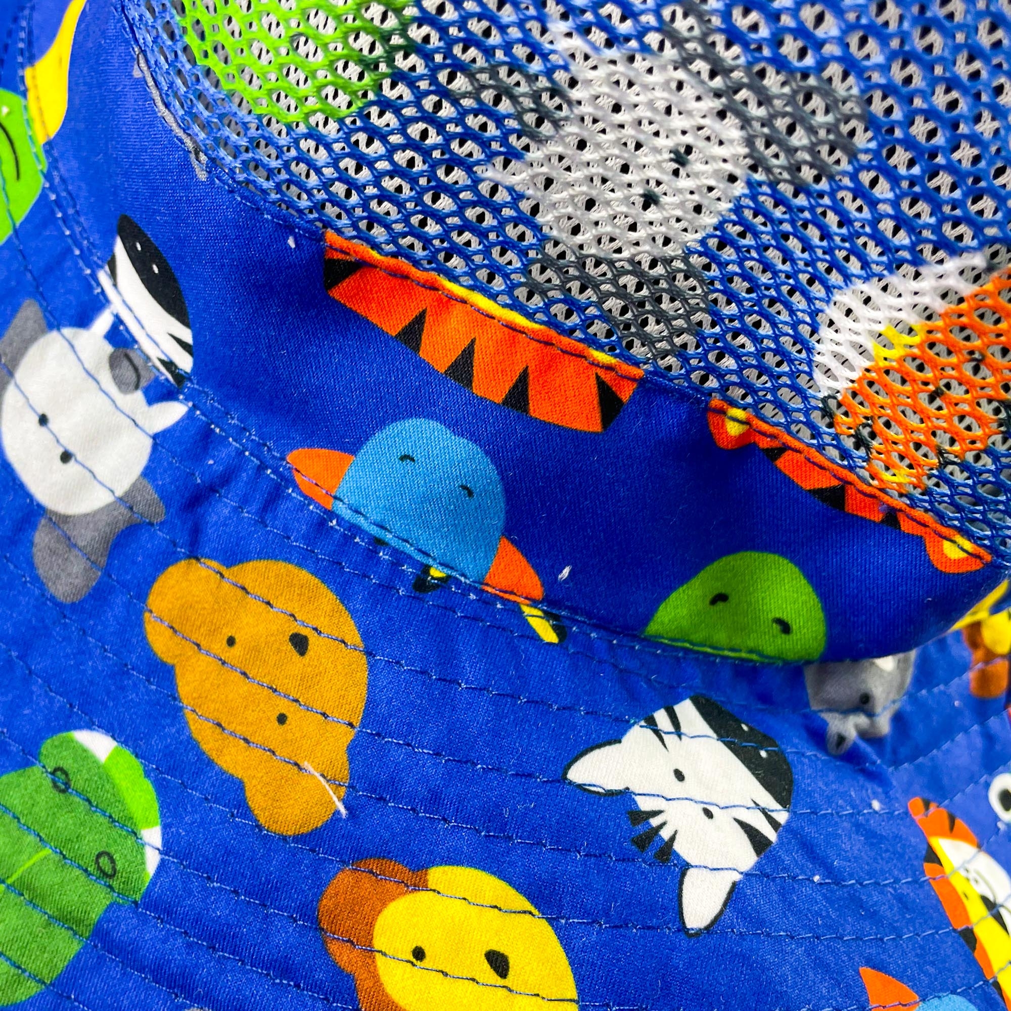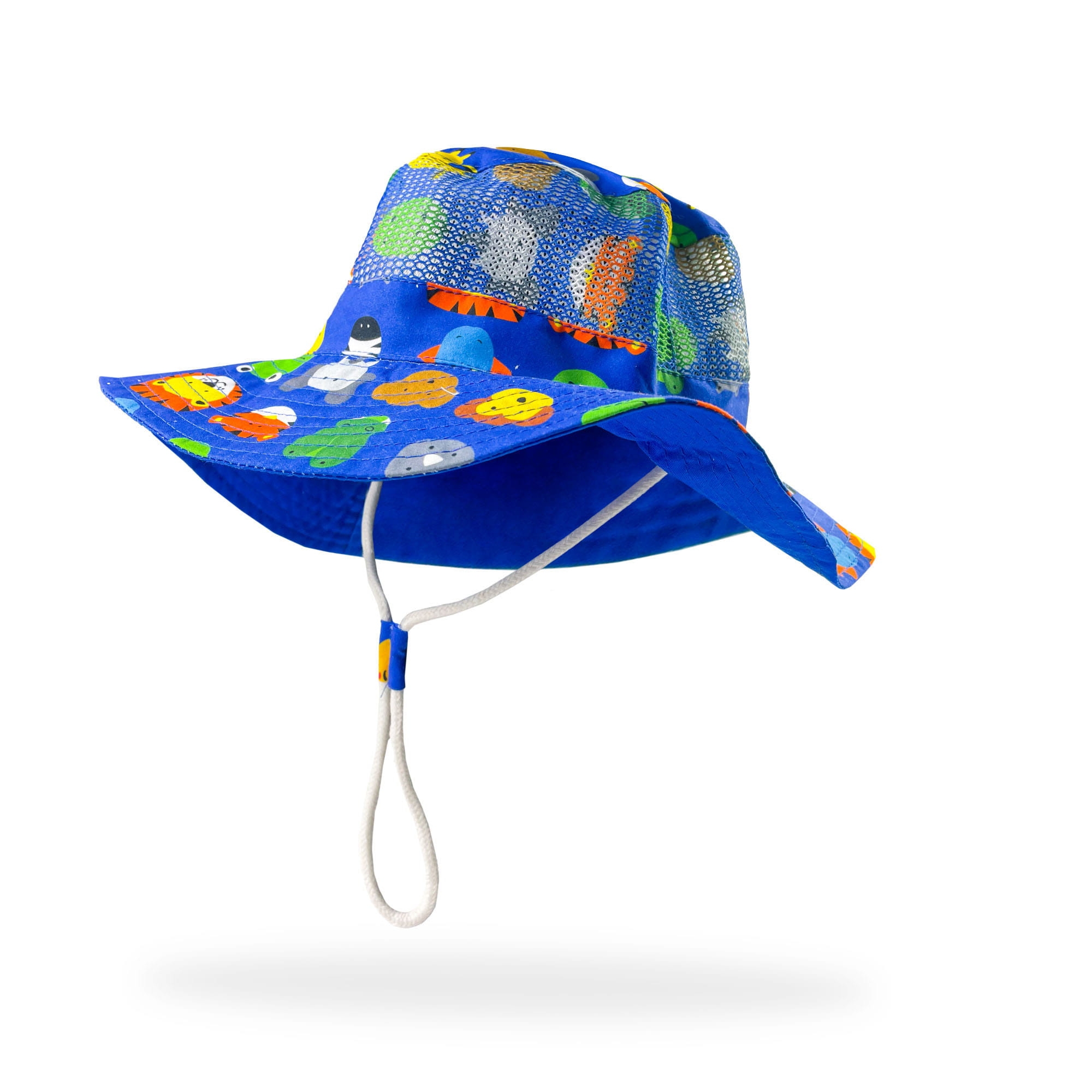 zewnętrzną z dziecięcymi wzorami. Kapelusz posiada sznurek z regulacją, która sprawia, że czapka dopasowuje się do głowy i nie spada w trakcie zabawy.