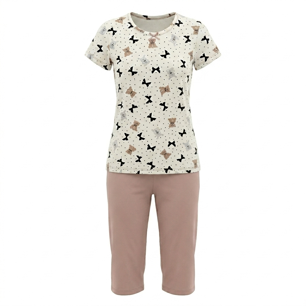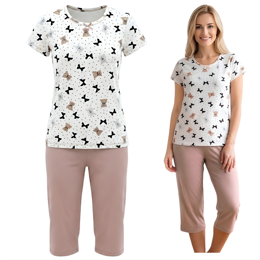 Piżama Damska z Krótkim Rękawem i Spodenkami 3/4- Wygoda i Styl na Dobranoc!