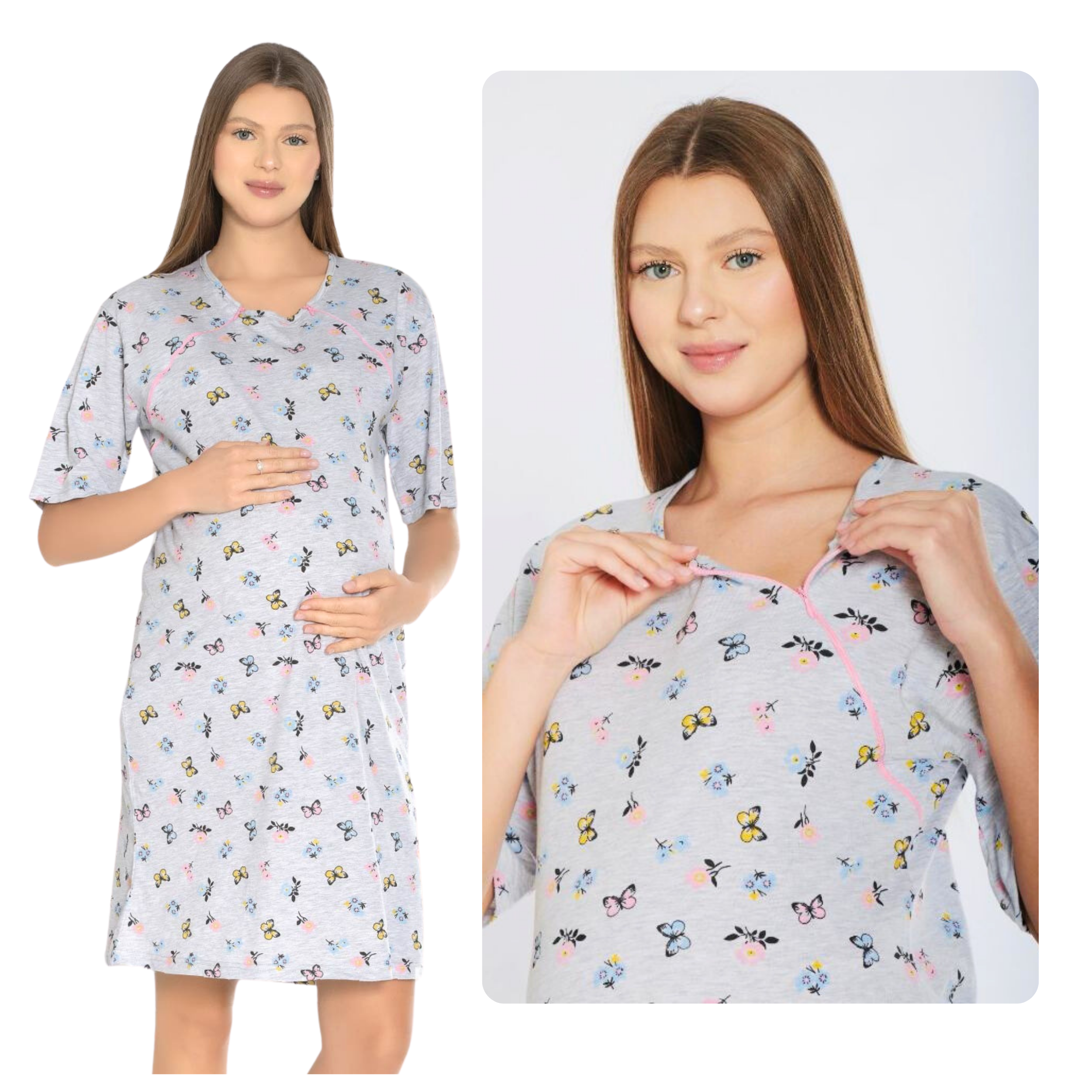 - Koszula nocna damska do karmienia z krótkim rękawem