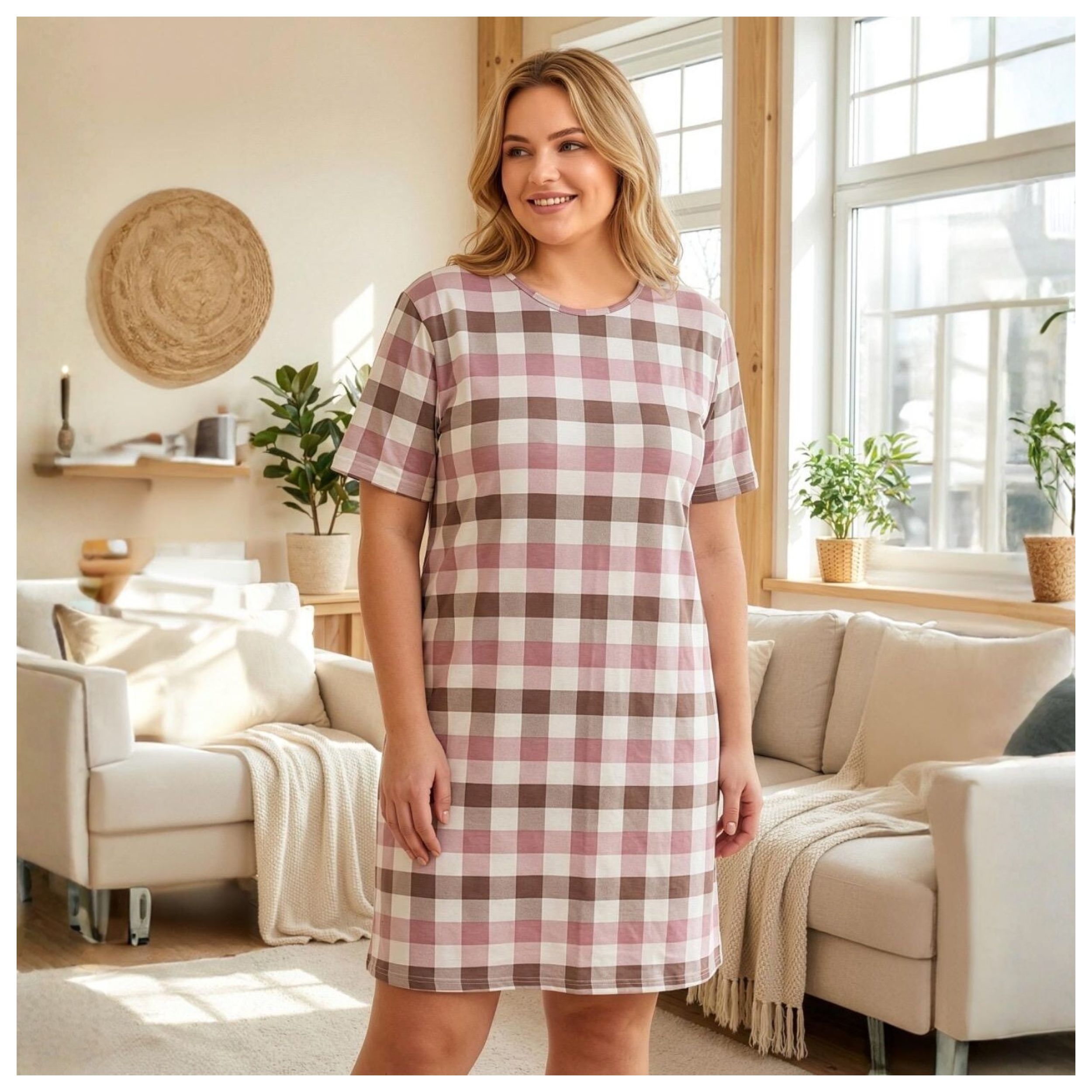Krótka koszula nocna damska PLUS SIZE w kratkę XL-4XL