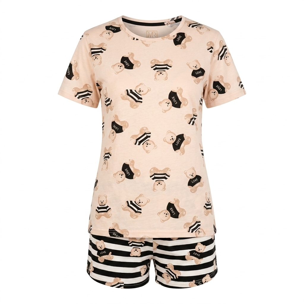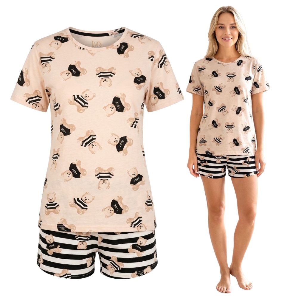 piżama damska krótka bawełna misie modna młodzieżowa