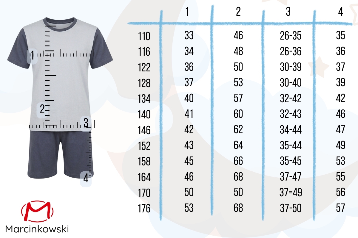 Piżama dziecięca dla chłopca krótki rękaw krótkie spodenki 128-164