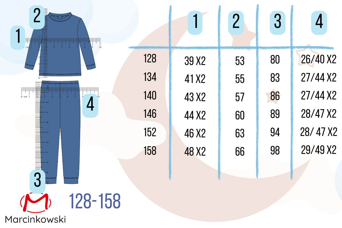- Rozmiary: 128, 134, 140, 146, 158