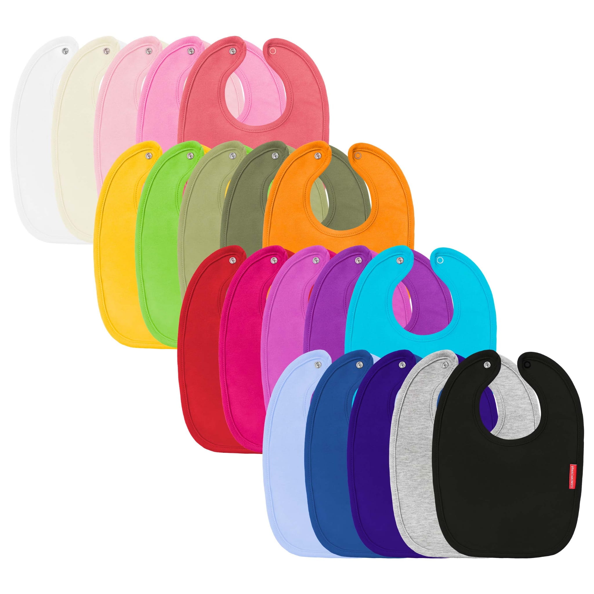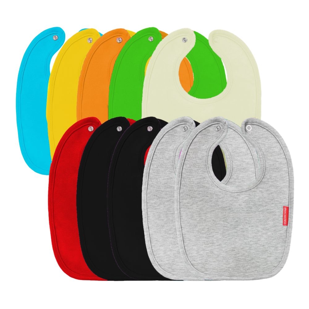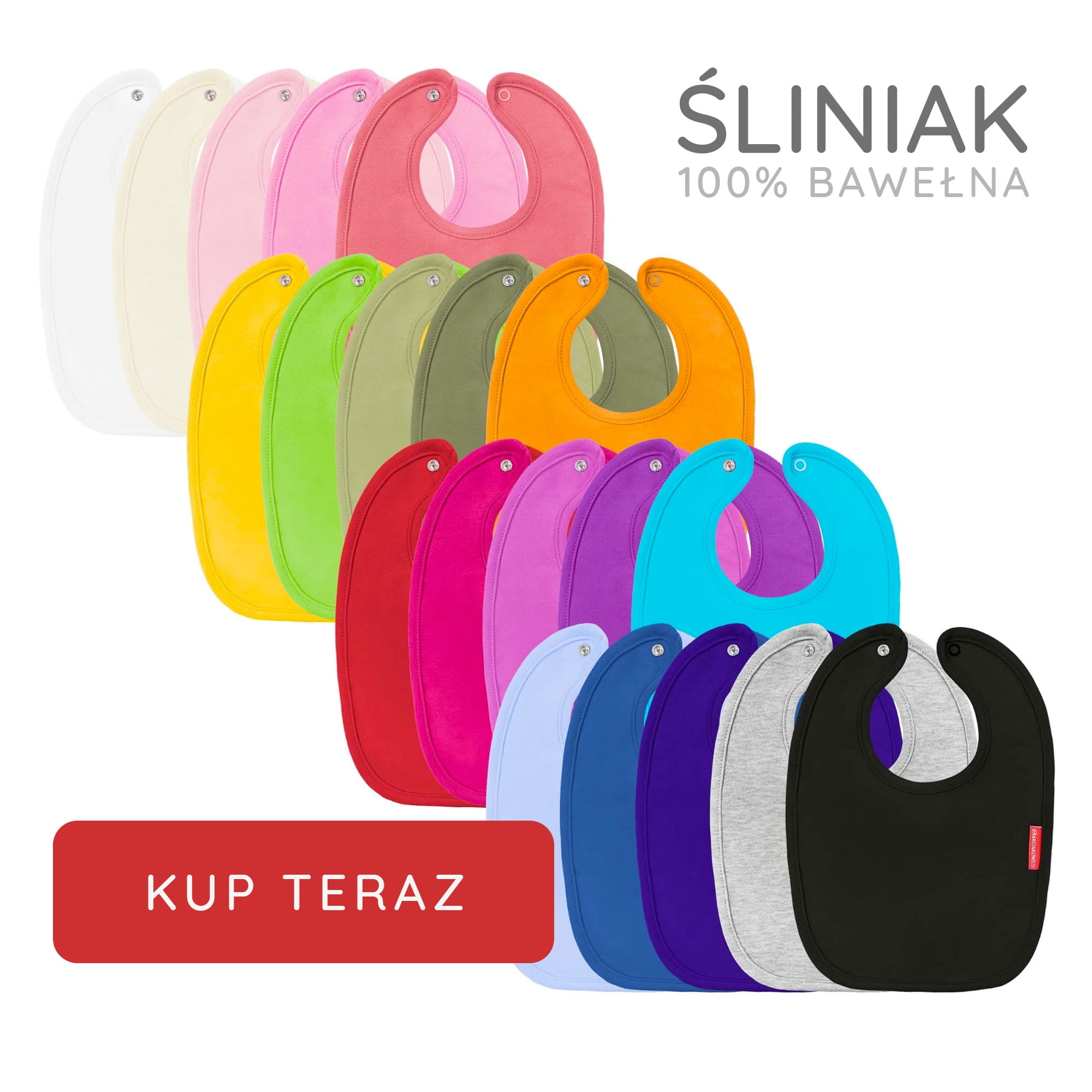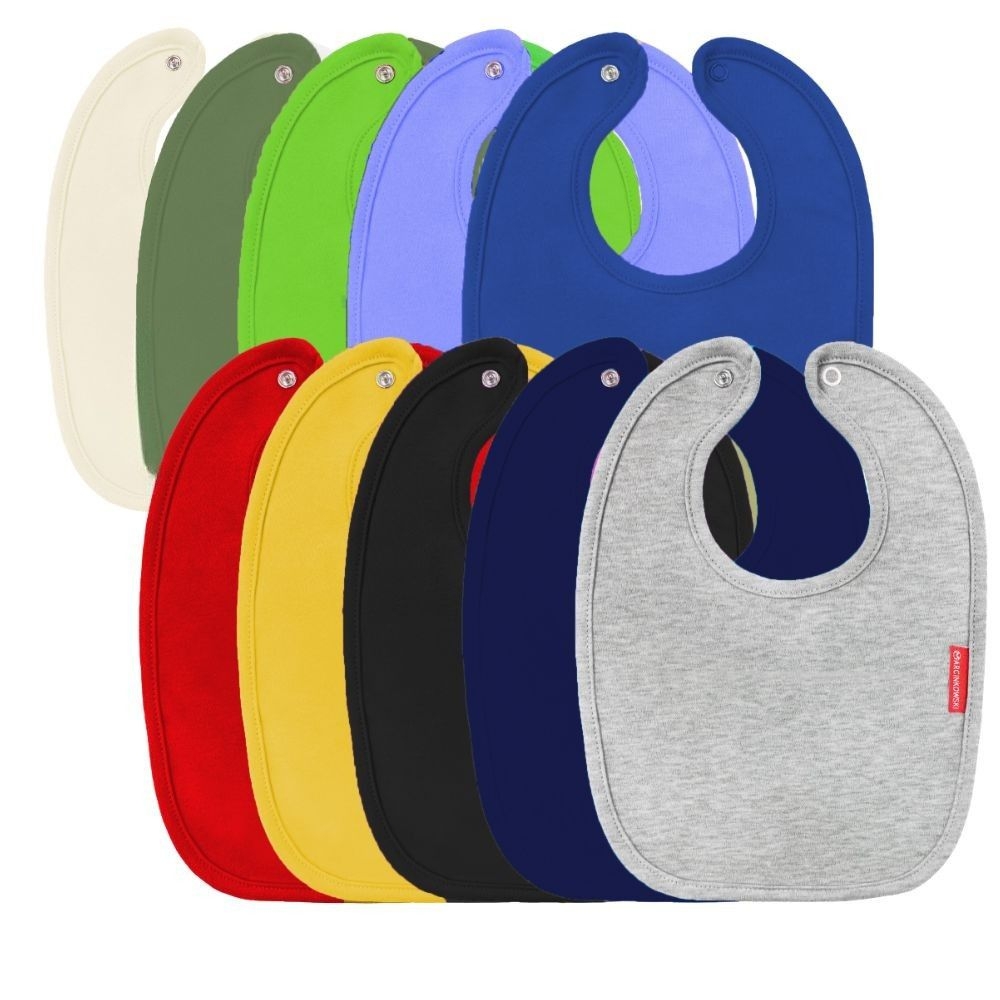 miękkiej i mięsistej bawełny. Dziecko może go nosić cały czas w trakcie dnia. Śliniaki dostępne są w 19 kolorach, od pastelowych, przez żywe, po ciemne kolory.