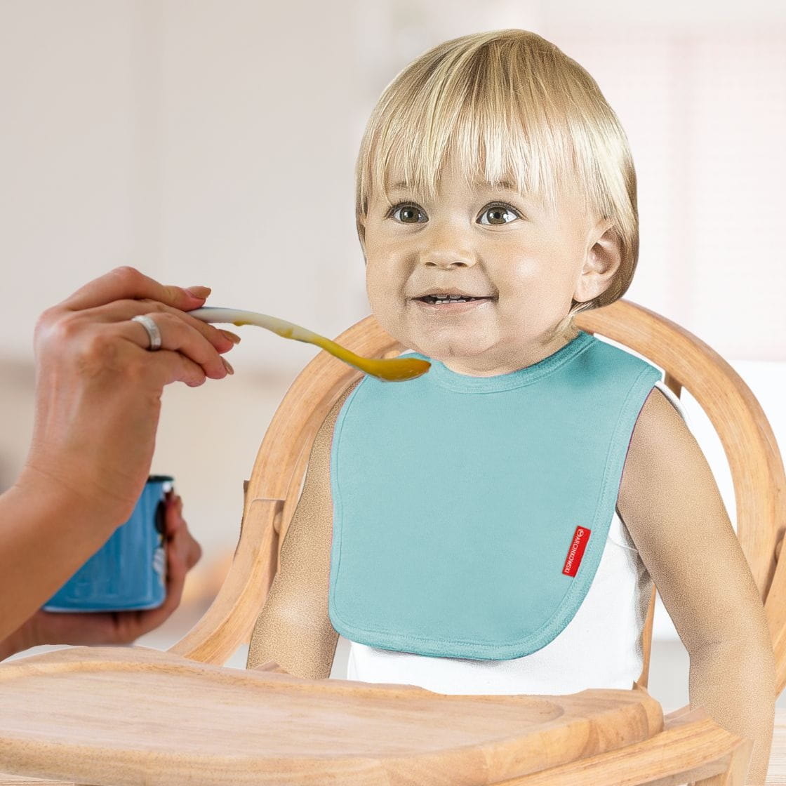 dla każdego noworodka. Śliniak posiada zapięcie na bezniklowy zatrzask niemieckiej firmy Prym, który nie uczula. Śliniaki posiadają dwie warstwy chłonnej,