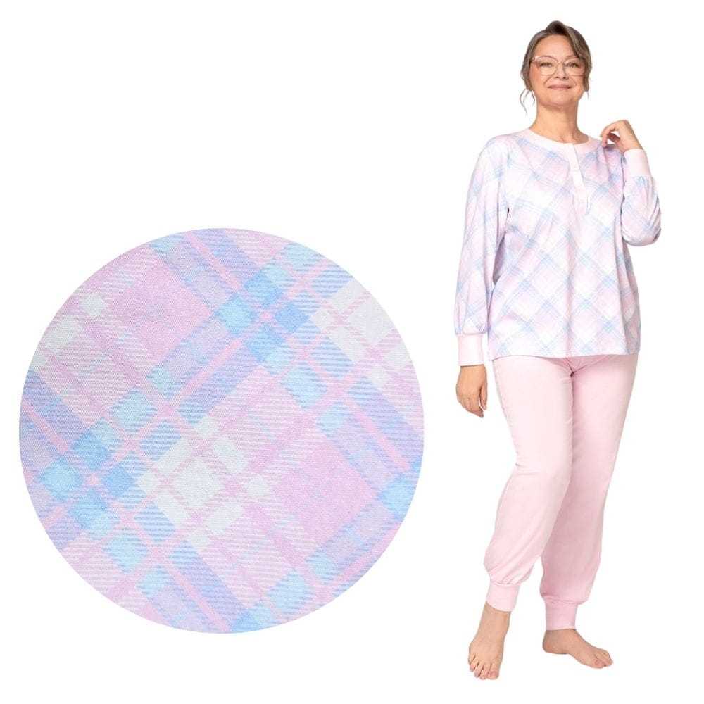 Wygodna piżama damska z długim rękawem rozpinany dekolt M-3XL