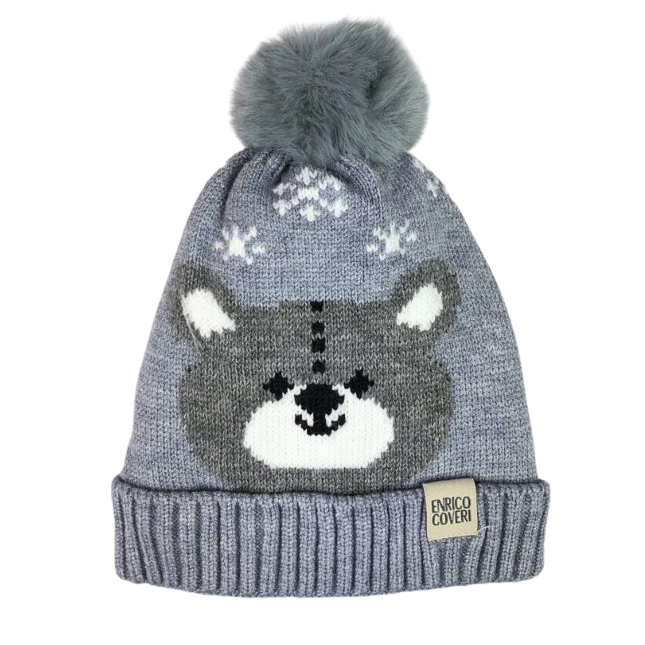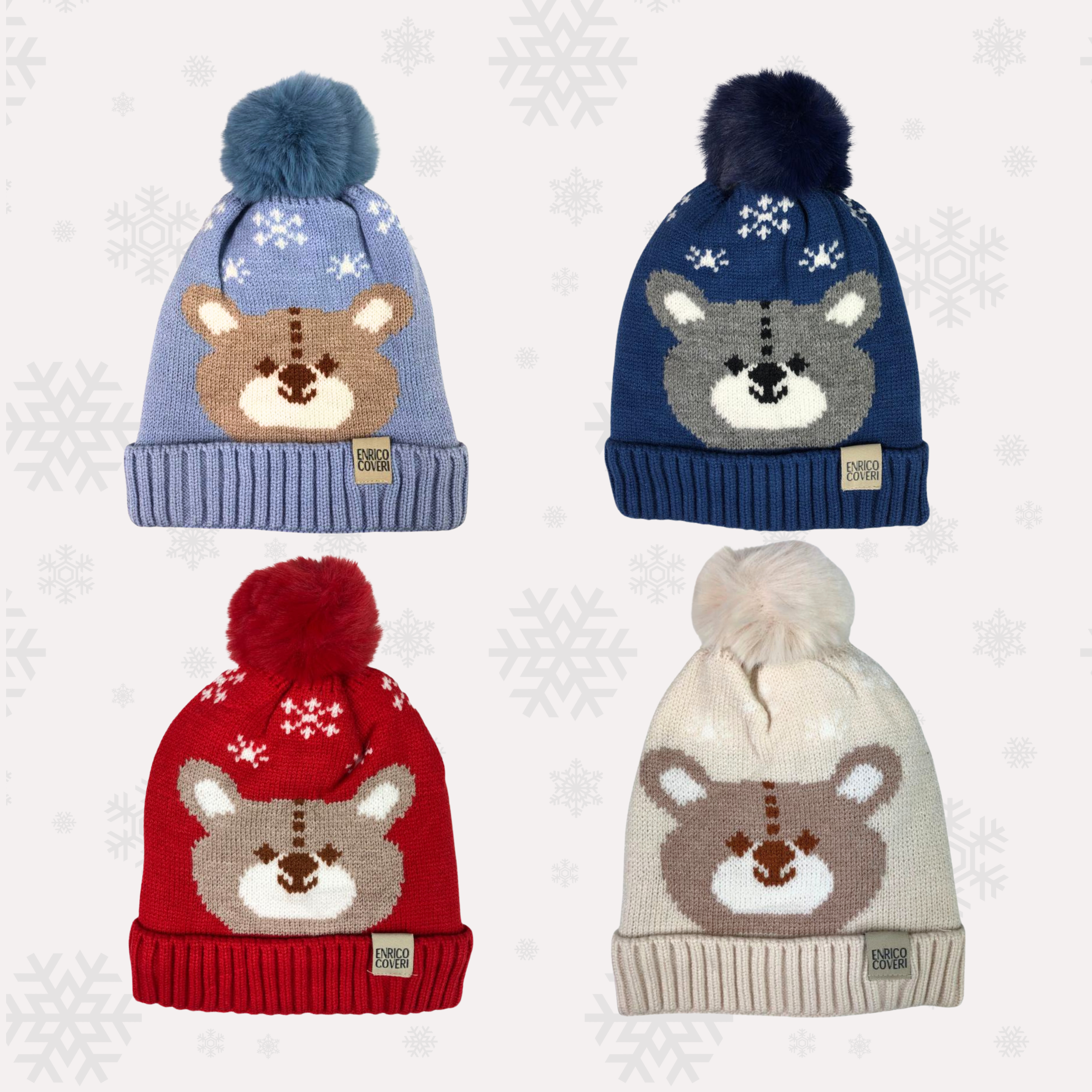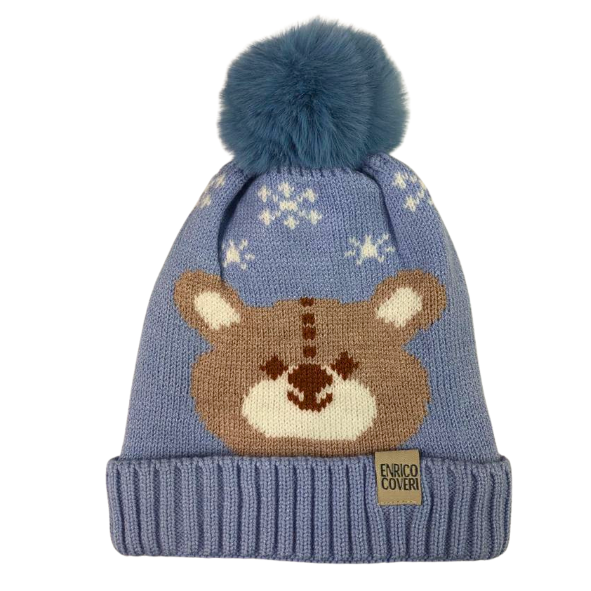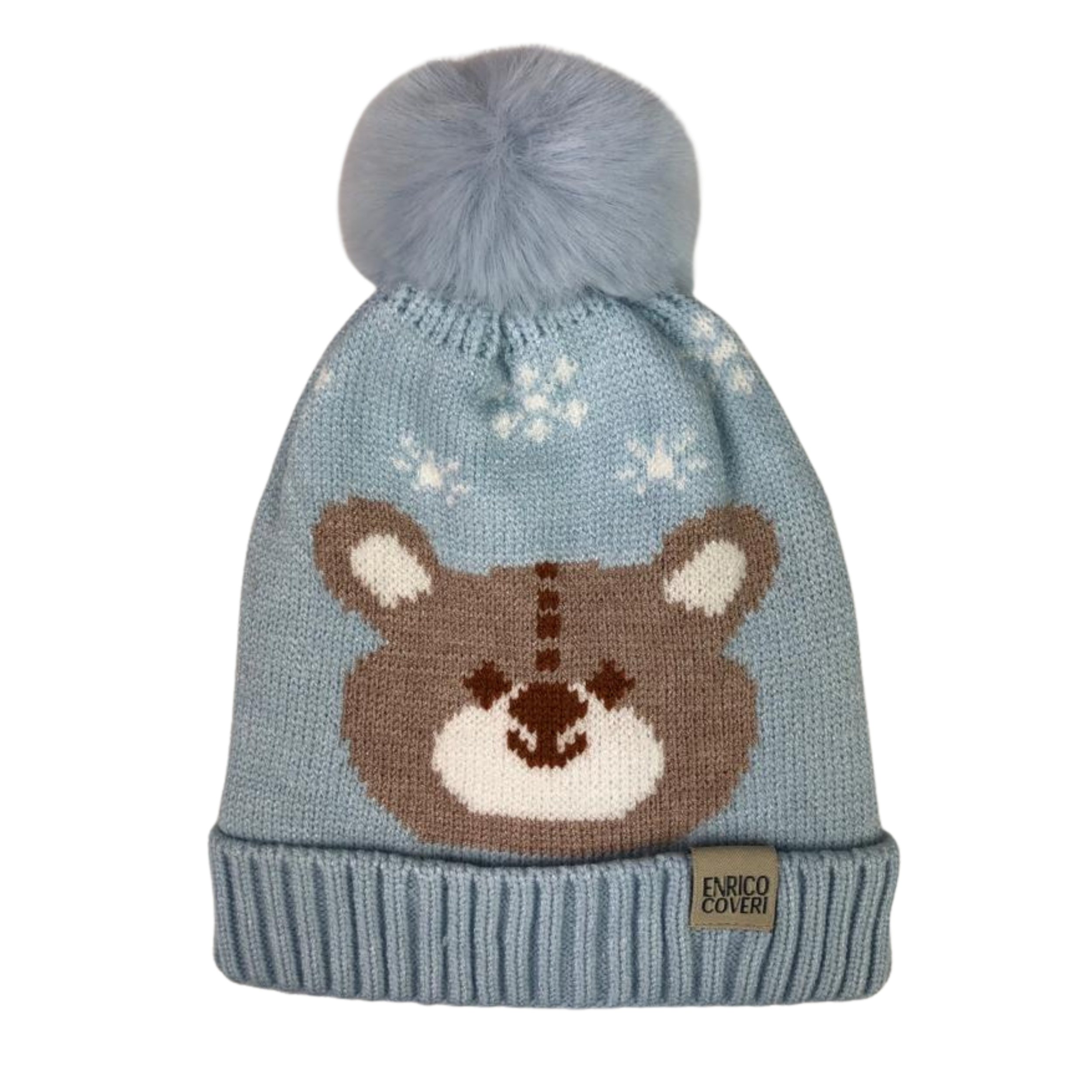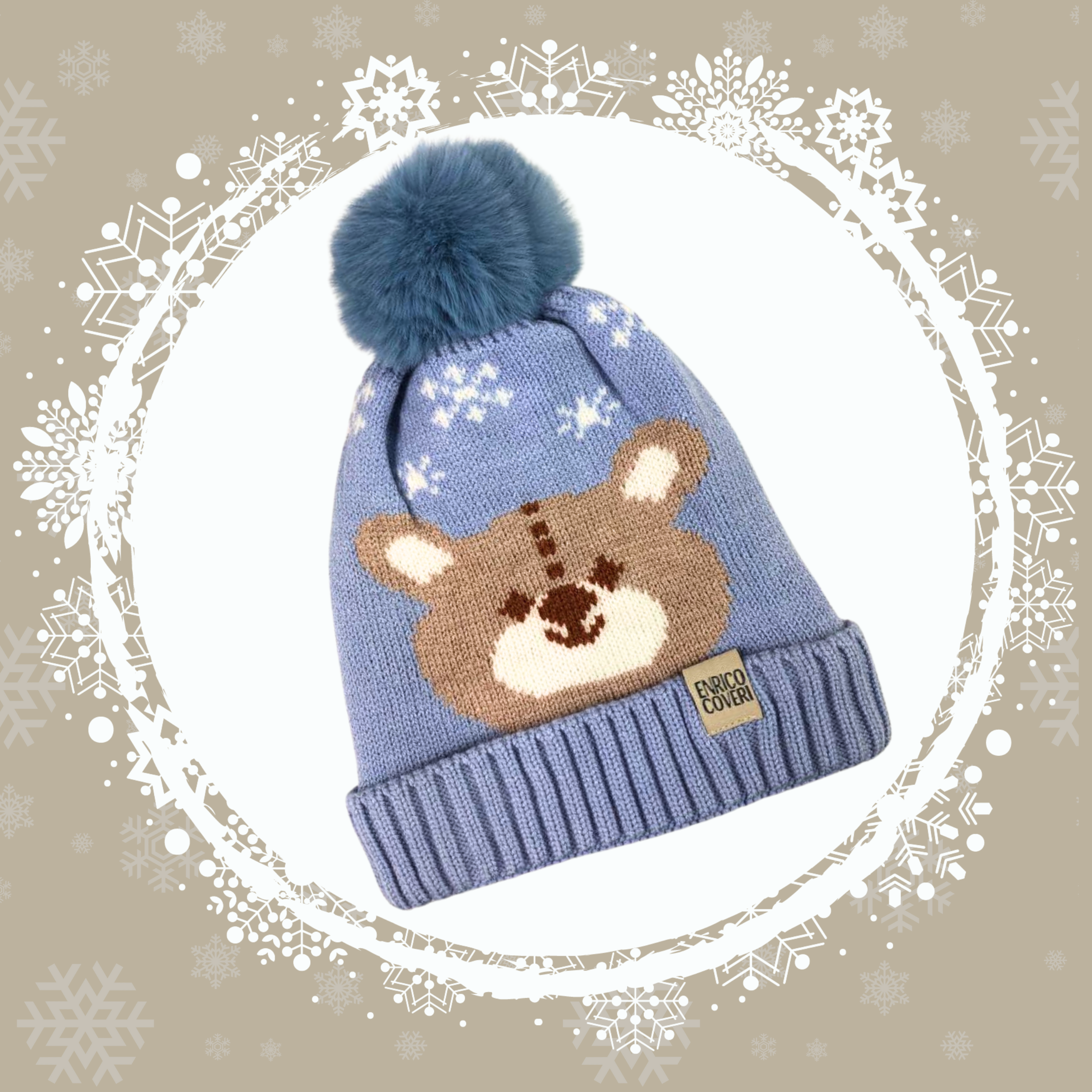 Czapka dziecięca na zimę z polarową podszewką. Twój maluch na pewno nie zmarznie. Czapeczka posiada nadruk wesołego misia i snieżynek oraz puszysty pompon, który nadaje jej wyjątkowego charakteru. Idealna dla chłopca i dziewczynki. Obwód czapki mierzony po wewnętrznej stronie to ok. 48- 50 cm, zatem nadaje się dla dzieci w wieku ok. 2 lat.